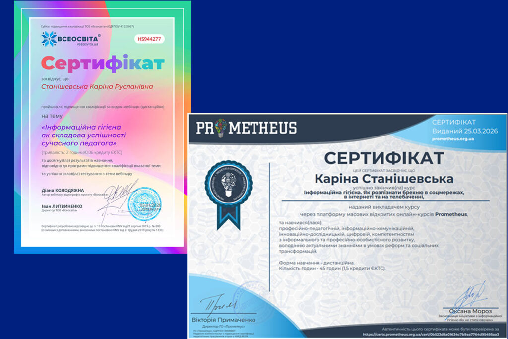 - Сучасний філолог в умовах цифрового суспільства: медіаграмотність, інформаційна гігієна та цифрова безпека (досвід неформальної освіти магістрантки Каріни Станішевської)