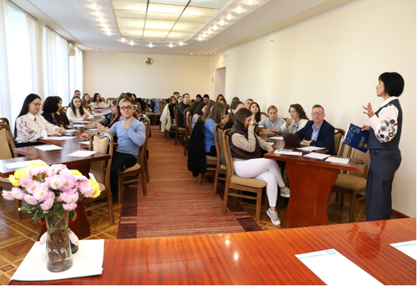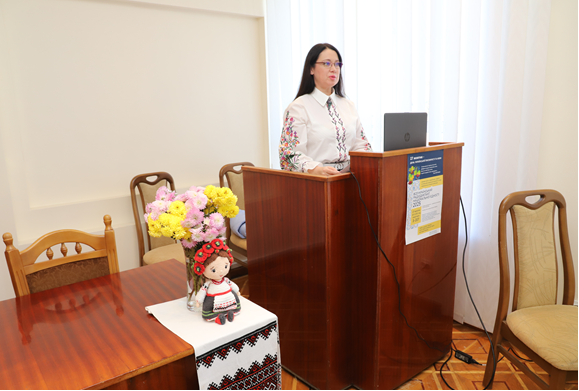Захід розпочався з вітального слова декана гуманітарно-педагогічного факультету Нелі Подлевської, яка у своєму виступі акцентувала на непорушному значенні мови для особистості, а також зазначила, що після повномасштабного вторгнення рідна мова набула статусу вирішального маркера національної державності та ідентичності.