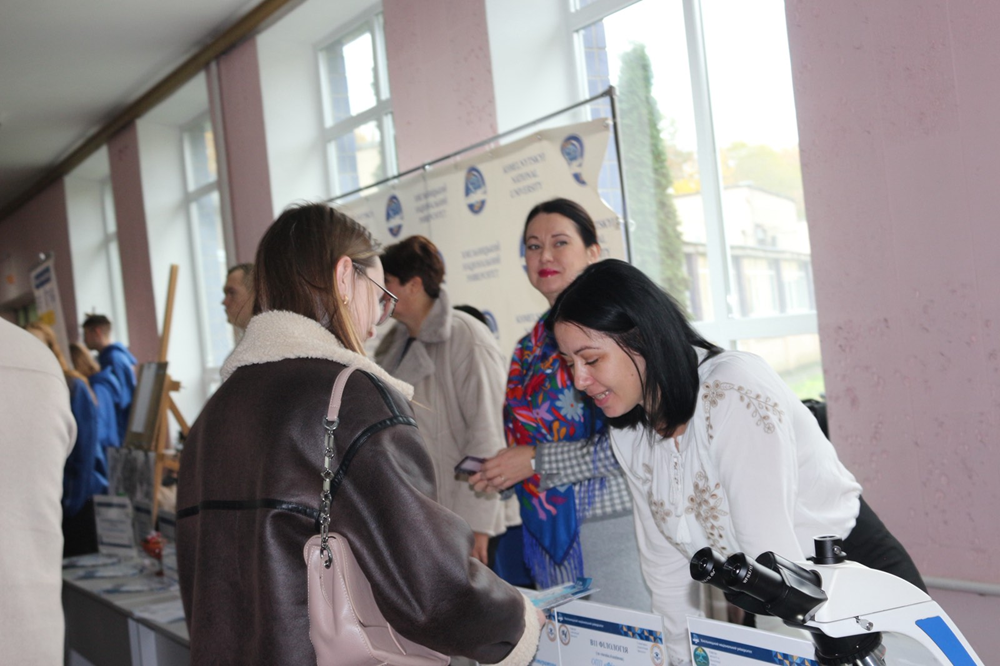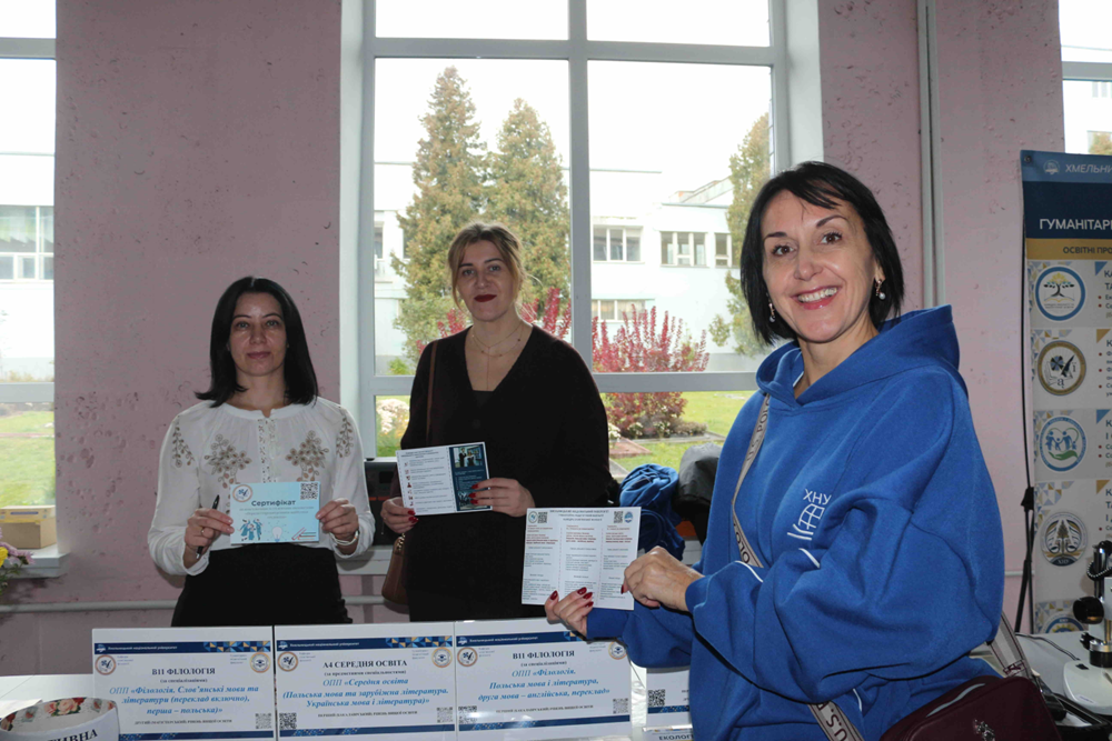 Представники кафедри слов’янської філології – викладачі Світлана Войталюк, Інна Горячок, Оксана Ранюк і студентки Жутова Ірина і Науменко Мілана – представляли свої освітні програми, розповідали про унікальні можливості, які відкриває вивчення польської, англійської та української мов, а також про професійні перспективи випускників – перекладачів, філологів, учителів, культурних менеджерів.