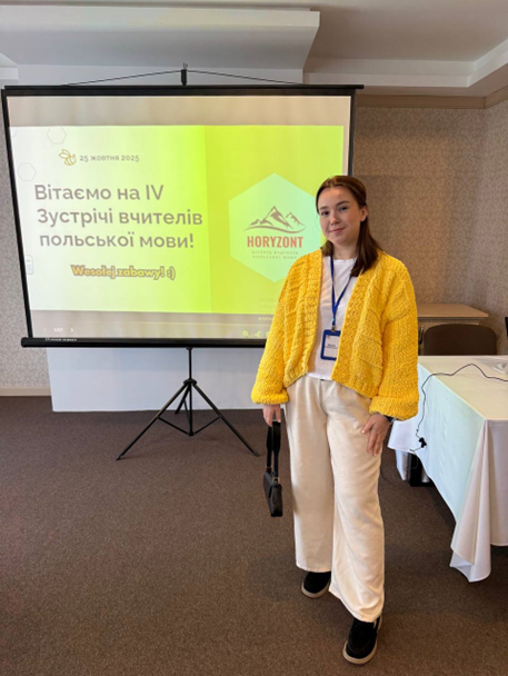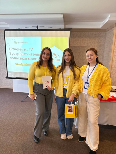 Участь магістранток Каріни Станішевської, Анастасії Івахнюк, Вікторії Савєльєвої та випускниці кафедри Іванни Панчук у IV Всеукраїнській зустрічі вчителів польської мови «HORYZONT» дала змогу ознайомитися з новітніми тенденціями у сфері викладання польської мови, розширити професійні контакти з педагогами та керівницями шкіл із різних регіонів України, а також напрацювати власні плани на майбутнє. Захід справив на учасниць позитивне враження, відзначався високим рівнем організації та професійною атмосферою. Участь у ньому сприяла поглибленню фахових знань, набуттю практичного досвіду та розширенню методичного інструментарію. Обмін педагогічними ідеями та сучасними підходами до навчання став важливим етапом професійного зростання. Отримані враження та здобуті компетенції безперечно сприятимуть подальшому розвитку педагогічної діяльності.