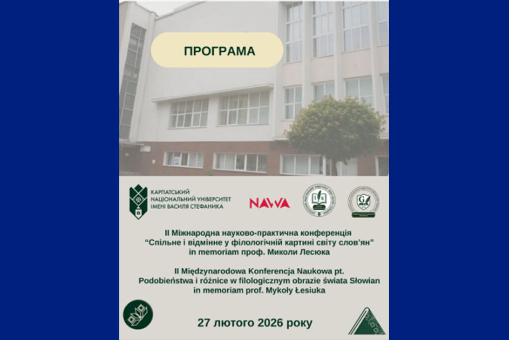 - Участь викладачів кафедри та студентів-полоністів у II Міжнародній науково-практичній конференції «Спільне і відмінне у філологічній картині світу словʼян» іn memoriam проф. Миколи Лесюка