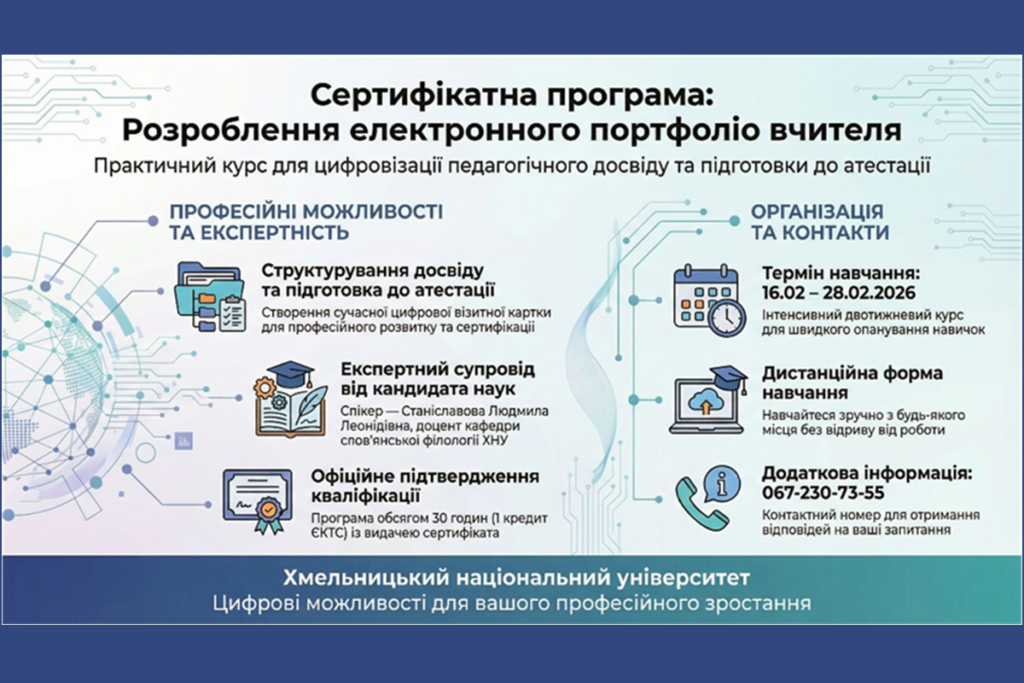 - Підвищення кваліфікації педагогів у межах сертифікатної програми «Викладання літератури в сучасних освітніх умовах»