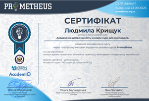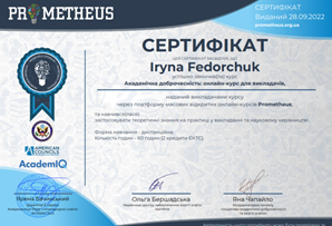 Студентам, зокрема, було запропоновано прослухати курс «Академічна доброчесність: онлайн-курс для викладачів» на платформі «Prometheus» (або на іншій платформі). Поряд з ознайомленням із лекційним матеріалом здобувачі вищої освіти мали можливість вирішувати кейси, виконувати тести, писати власні відгуки щодо прослуханого, тобто набувати навичок наукового мовленні і реалізації умінь у практичній діяльності. Після закінчення курсу всі слухачі отримали сертифікати із зазначенням кількості годин (60 год. / 2 кредити ЄКТС), що дозволило після аудиторного обговорення отриманої інформації перезарахувати вищезгадані теми. Крім того, магістранти мали можливість обрати відповідні курси й на інших платформах.