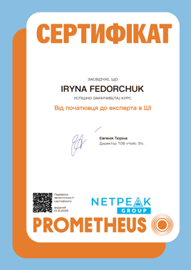 Зокрема, із-поміж магістрантів гр. ФППм-25 / ФППмз-25 сертифікати отримали Лілія Ороховська, Анна Жованецька, Вікторія Савельєва, Каріна Станішевська, Ірина Федорчук, Анастасія Халецька, Людмила Крищук, Лариса Турняк.