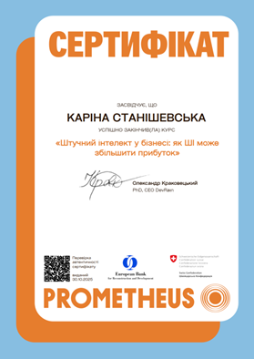 Оскільки ШІ можна використовувати в усіх сферах діяльності, то на МОНД також розглядається відповідна тема. Отже, магістранти не обмежуються лише лекційними матеріалами, а активно долучаються до неформальної освіти щодо можливостей ШІ, що підтверджено відповідними сертифікатами.