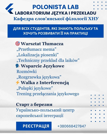 Polonista LAB – Laboratorium języka i przekładu – це студентський освітній проєкт кафедри слов’янської філології Хмельницького національного університету, ініційований та реалізований під керівництвом викладачки кафедри Світлани Войталюк.