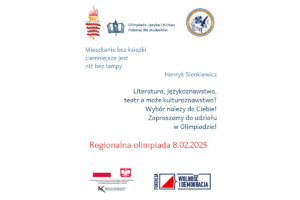 Проведено І (регіональний) етап Міжнародної олімпіади з польської мови та літератури 8 лютого 2025 року в Українсько-польському центрі європейської інтеграції Хмельницького національного університету відбувся І (регіональний) етап Міжнародної олімпіади з польської мови та літератури, організованої Головним комітетом олімпіади при Інституті літературних досліджень Польської академії наук у Варшаві спільно з кафедрою слов’янської філології та Хмельницьким обласним … Читати далі Проведено І (регіональний) етап Міжнародної олімпіади з польської мови та літератури