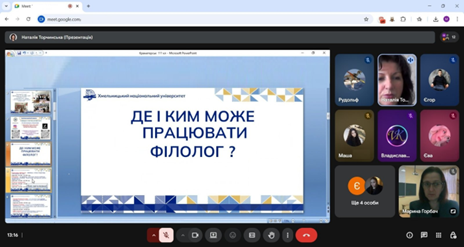 18 березня 2026 року відбулася онлайн-зустріч з учнями 10–11 класів Краматорського закладу загальної середньої освіти №22 з профільним навчанням імені Миколи Миколайовича Крупченка Краматорської міської ради Донецької області, які навчаються за профілем «Іноземна філологія. Польська та англійська мова». Можливість поспілкуватися з майбутніми абітурієнтами і позитивну атмосферу для конструктивної бесіди створила стейкхолдер, випускниця магістерської освітньої програми кафедри «Слов’янські мови і літератури (переклад включно), перша – польська», вчителька української мови і літератури та польської мови Марина Горбач.