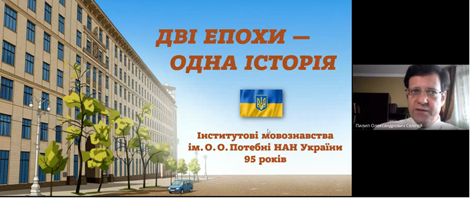 «Дві епохи – одна історія: Інститутові мовознавства ім. О. О. Потебні 95 років». Лектор – доктор філологічних наук, завідувач відділу слов’янських мов Інституту мовознавства ім. О. О. Потебні НАН України Пилип Селігей. Автор висвітлив етапи розвитку та вершинні досягнення найстарішої мовознавчої установи України.