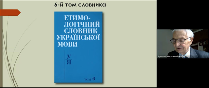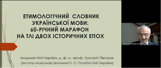 «Етимологічний словник української мови в семи томах: 60-річний марафон на тлі двох історичних епох». Лектор – академік НАН України, доктор філологічних наук, професор Григорій Півторак. Доповідач ознайомив учасників колегіуму зі всіма творчими етапами епохальної праці – від підготовчого з 1964 року до виходу у світ 6-го тому 2012 року, а також розкрив специфіку роботи над словником в умовах комуністичного режиму й після відновлення незалежності України.