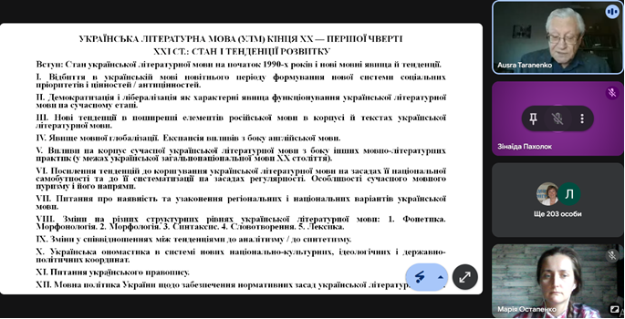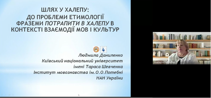 «Шлях у халепу: до проблеми етимології фраземи «потрапити в халепу» в контексті взаємодії мов і культур». Лектор – доктор філологічних наук, професор, професор кафедри слов’янської філології Київського національного університету імені Тараса Шевченка Людмила Даниленко. Доповідачка розповіла про функціонування у сучасній українській мові слова ХАЛЕПА, зокрема закцентувала на походженні, семантиці та етимології цього слова.