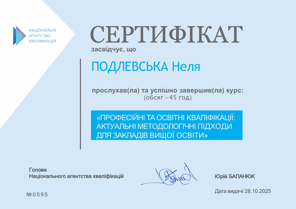 Підвищення кваліфікації тривало з 22 вересня до 17 жовтня 2025 року.